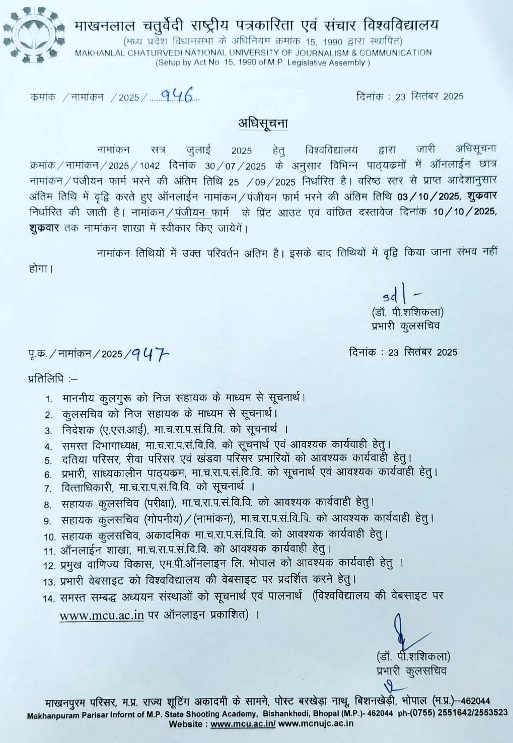 विद्यार्थियों को कुलगुरू का पत्र : IN PDF… | IN TEXT…