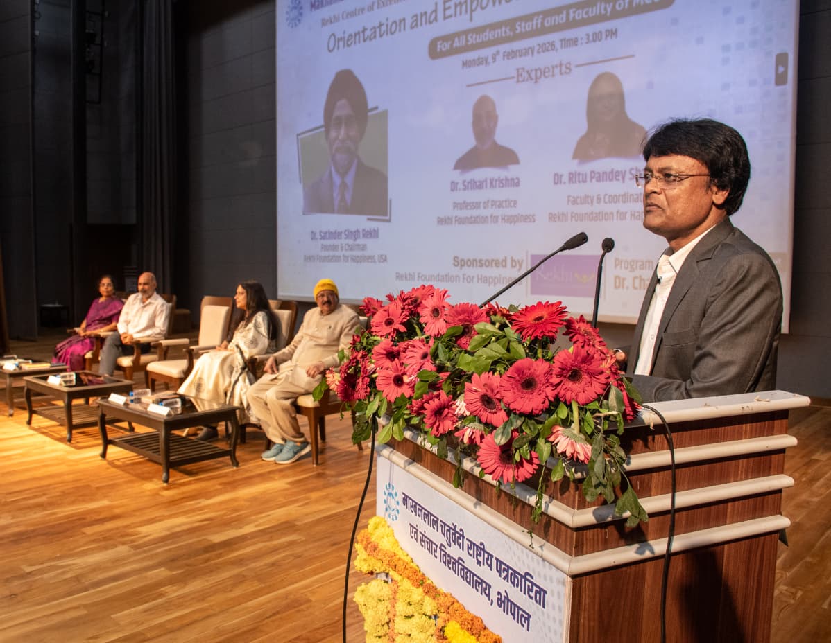 डॉ. शर्मा ने एमसीयू में रेखी केंद्र के माध्यम से आगामी समय में कार्ययोजना के बारे में बताते हुए कहा कि मीडिया, संचार और आनंद विज्ञान के जोड़ से सामाजिक बदलाव लाने का प्रयास होगा।