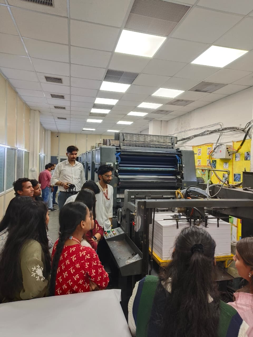 सर्वप्रथम भ्रमण की शुरुआत कैलाश प्रिंटर्स गोविंदपुरा औद्योगिक क्षेत्र से की गयी।यहा विद्यार्थियों के मार्गदर्शन कंपनी के डायरेक्टर श्री आशीष सुहाने जी द्वारा किया गया।उनके द्वारा पब्लिकेशन कार्य,ऑफसेट टेक्नोलॉजी एवं फिनिशिंग डिपार्टमेंट के कार्यों से अवगत कराया एवं सभी मशीनो की जानकारी विद्यार्थियों से साझा की।वेब ऑफसेट , शीटफेड ऑफसेट, सी टी पी मशीन एवं फिनिशिंग डिपार्टमेंट की अन्य मशीनो की जानकारी दी गयी और टेक्नोलॉजी को समझाया एवं विद्यार्थियों को उत्साहित किया और आश्वस्त किया के भविष्य मे किसी भी प्रकार की मशीन एवं टेक्नोलॉजी को सिखाने एवं विद्यार्थीयो को इंडस्ट्रीयल र्ट्रेनिंग उपलब्ध कराने के लिए भी वह तैयार है।