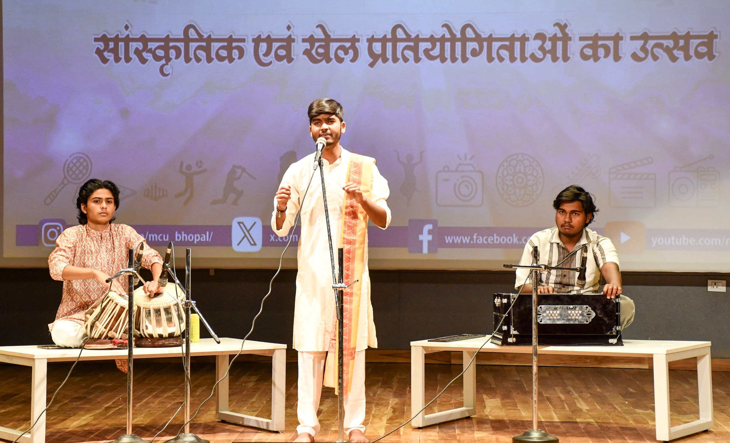 भोपाल 17 मार्च 2026 : एमसीयू में वार्षिकोत्सव प्रतिभा- 2026 का आयोजन जारी है। आज दूसरे दिन विश्वविद्यालय परिसर बिशनखेड़ी स्थित परिसर में एकल अभिनय और एकल गायन भारतीय विधाओं में विद्यार्थियों ने अपना कौशल दिखाया। आज प्रतिभा के दूसरे दिन एकल अभिनय पर विविध विषयों पर अभिनय कौशल दिखाकर विद्यार्थियों ने दर्शकों और निर्णायकों की तालियां बटोरीं एकल अभिनय में 28 प्रतिभागियों ने भाग लिया। एकल गायन में प्रतिभागियों ने नॉन फिल्मी गीतों पर प्रस्तुतियां दीं। गजल और अन्य गीतों की प्रस्तुतियों को उपस्थित श्रोताओं ने खूब सराहा।