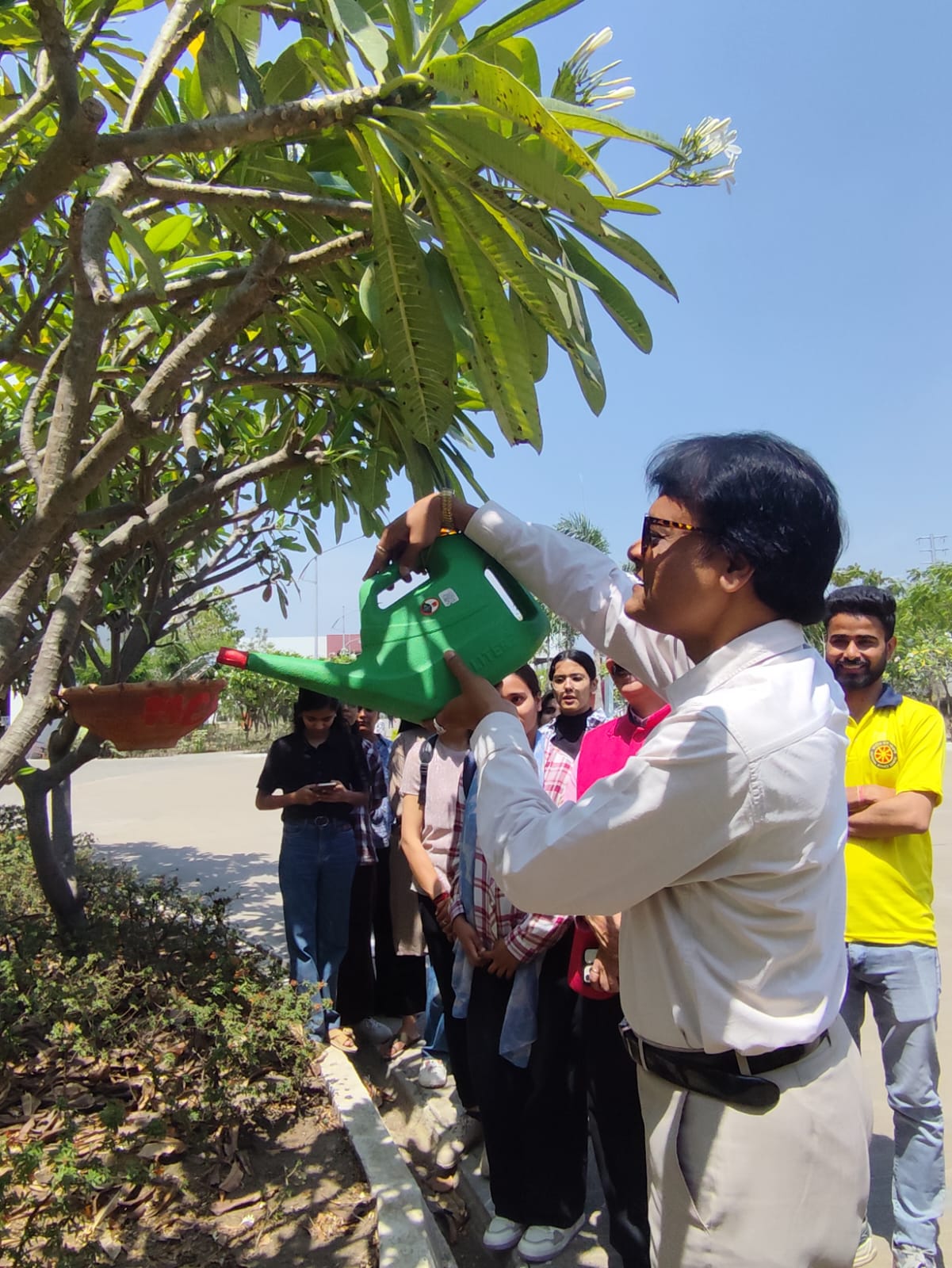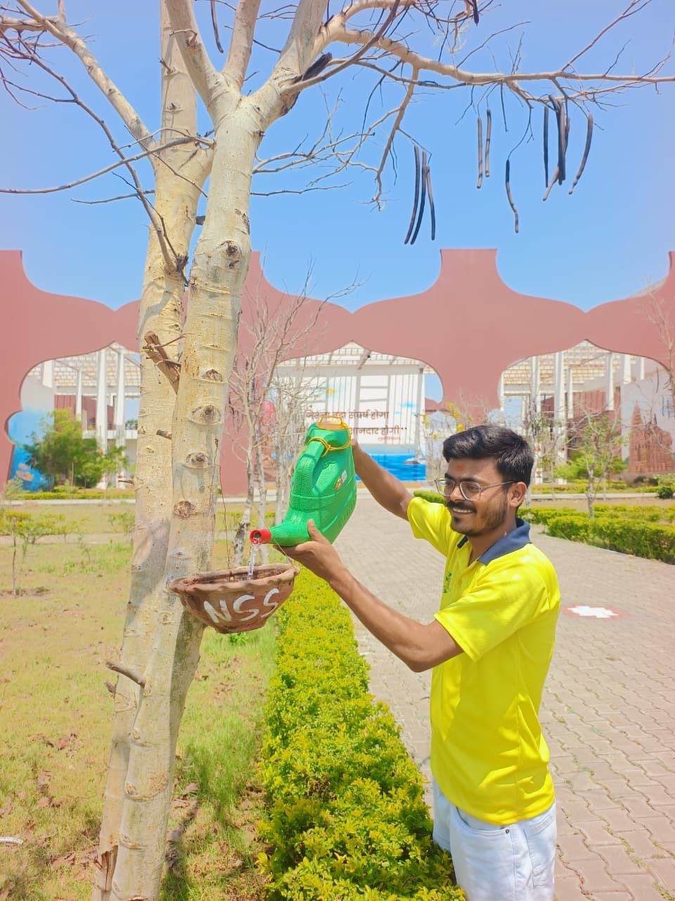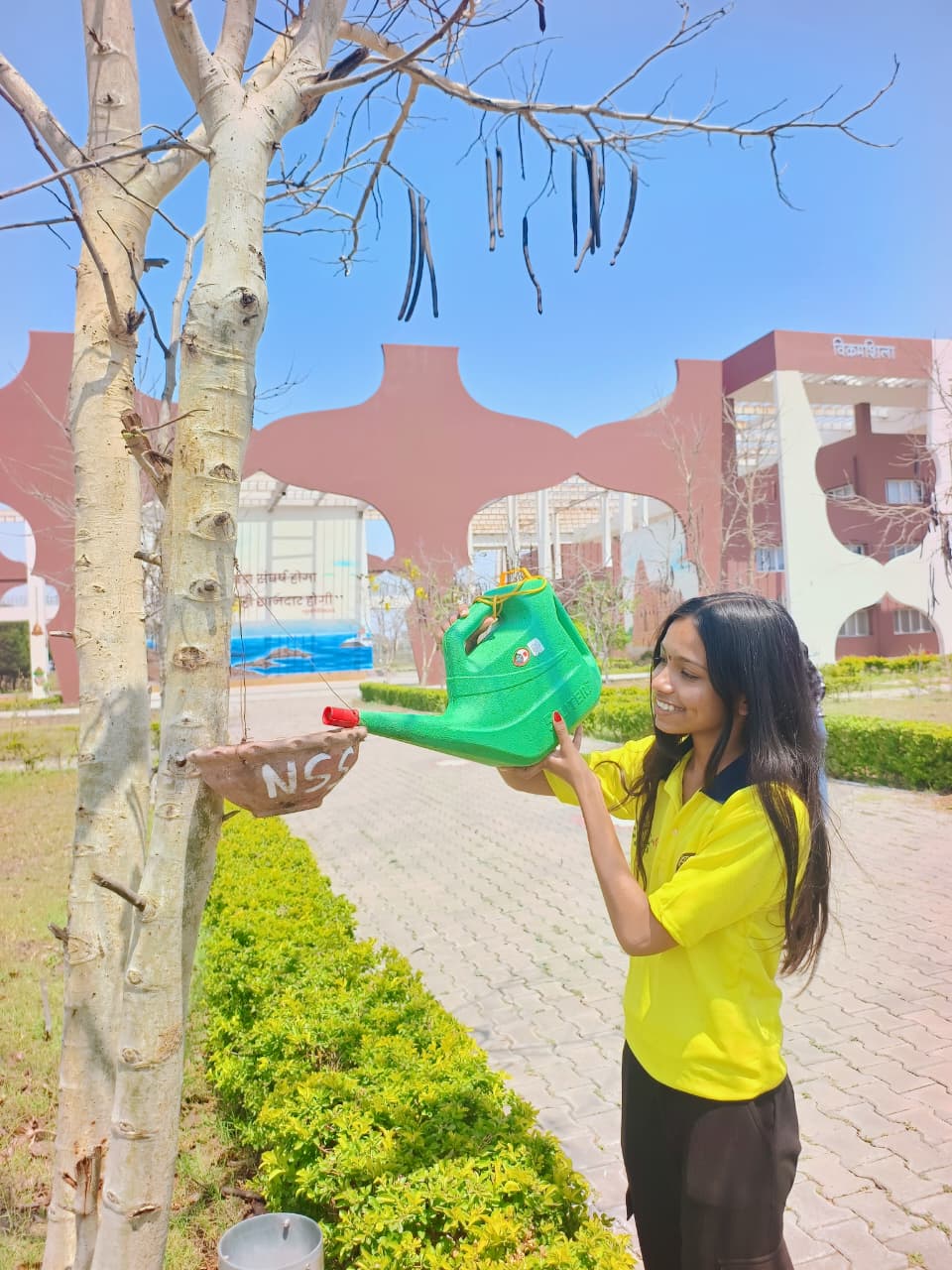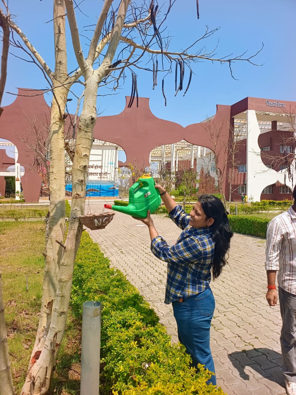 बढ़ती गर्मी में कैंपस में पक्षियों के लिए सकोरों में पानी और दाने का किया इंतजाम