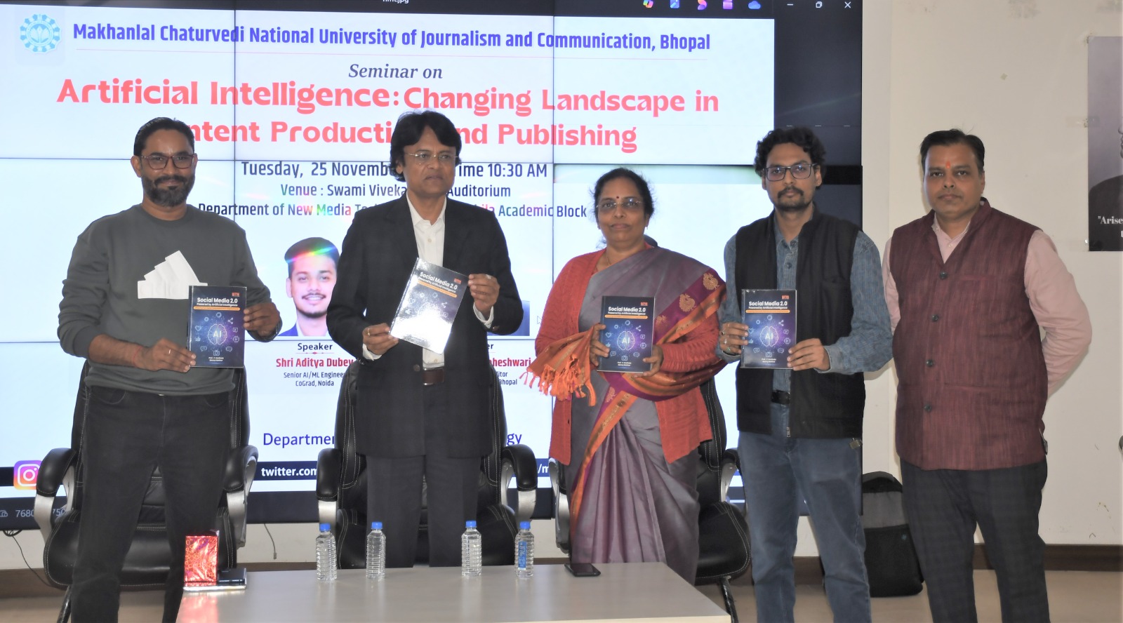 ┬арднреЛрдкрд╛рд▓ред 02 рджрд┐рд╕рдВрдмрд░ 2025 : рдореАрдбрд┐рдпрд╛ рдХрд╛ рд╕реНрд╡рд░реВрдк рджрд┐рди-рдкреНрд░рддрд┐рджрд┐рди рдмрджрд▓ рд░рд╣рд╛ рд╣реИ рдФрд░┬аAI┬арднреА рдореАрдбрд┐рдпрд╛ рдореЗрдВ рдЕрдкрдиреА рдЕрд╣рдо рдЬрдЧрд╣ рддреЗрдЬрд╝реА рд╕реЗ рдмрдирд╛ рд░рд╣реА рд╣реИред рдЗрд╕реА рджрд┐рд╢рд╛ рдореЗрдВ рднрд╛рд░рдд рдХреЗ рд╕рдмрд╕реЗ рдмрдбрд╝реЗ рдкрддреНрд░рдХрд╛рд░рд┐рддрд╛ рд╡рд┐рд╢реНрд╡рд╡рд┐рджреНрдпрд╛рд▓рдп┬аMCU┬ардореЗрдВ рдЗрд▓реЗрдХреНрдЯреНрд░реЙрдирд┐рдХ рдореАрдбрд┐рдпрд╛ рд╡рд┐рднрд╛рдЧ рджреНрд╡рд╛рд░рд╛┬атАЬFuture of News Production, AI-Driven Reporting & EditingтАЭ┬ард╡рд┐рд╖рдп рдкрд░ рдПрдХ рдорд╛рд╕реНрдЯрд░ рдХреНрд▓рд╛рд╕ рдХрд╛ рдЖрдпреЛрдЬрди рдХрд┐рдпрд╛ рдЧрдпрд╛ред