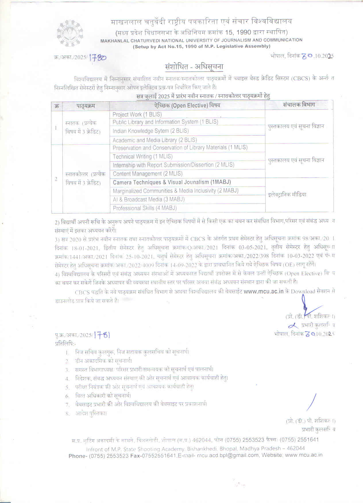 - संशोधित – अधिसूचना दिनाक 30.10.2025 – स्नातक/स्नातकोत्तर पाठ्यक्रम में CBCS के अंतर्गत ओपन इलेक्टिव प्रशन पत्र निर्धारित सम्बन्धी