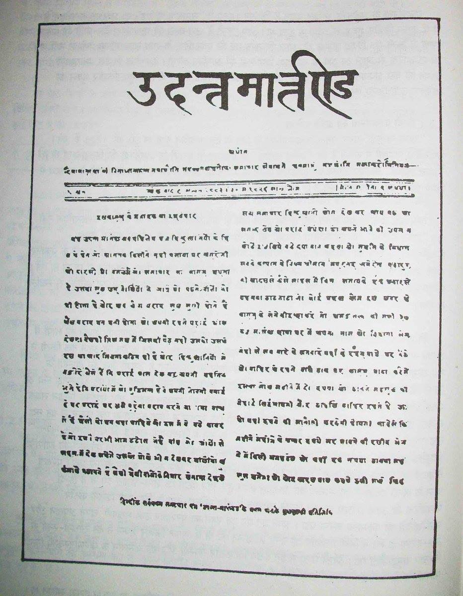 “हाल ही में इस कलकत्ता नगर से ‘उदन्त मार्त्तण्ड’ नामक नागरी का नूतन समाचार पत्र प्रकाशित हुआ है, इससे हमारे आह्लाद की सीमा नहीं है, क्योंकि समाचार पत्र द्वारा संपत्ति संबंधी और नाना देशों के राज सम्पर्कीय वृत्तांत प्रकाशित होते हैं, जिनके जानने से अवश्य ही उपकार होता है।”